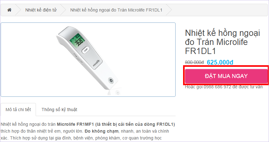 Hoặc chọn ĐẶT MUA NGAY ở trang chi tiết sản phẩm