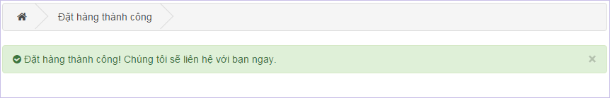 Chúc mừng bạn đã đặt hàng thành công, chúng tôi sẽ liên hệ với bạn để giao hàng trong thời gian sớm nhất